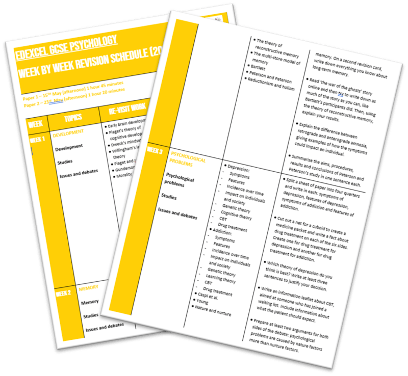 Weekly Revision Planner for Edexcel GCSE Psychology | 2024 Exams