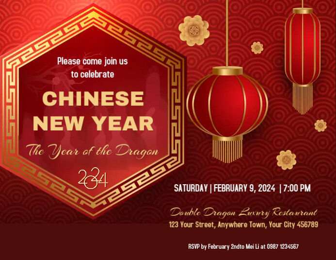 CHINESE New Year 2024 Celebration Invite Template | PosterMyWall